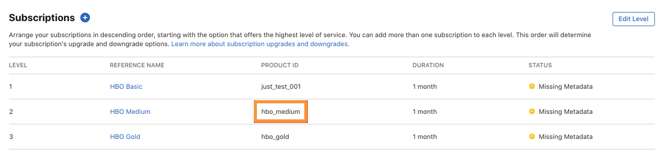 For Auto-Renewable Subscriptions ("Subscription" type of the offer in Cleeng), select the required subscription group, and find the matching product. Copy the product ID: