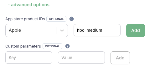 In the App store product IDs section, select the “Apple” store name, and put the product ID you copied from App Store Connect: