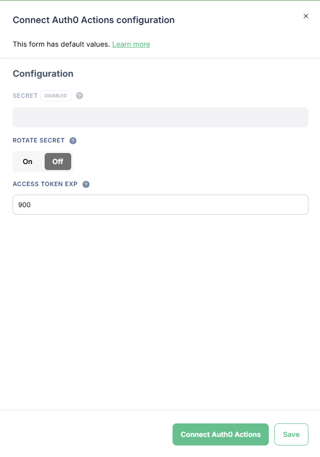 Click Save to auto generate the secret. OR click Connect Auth Actions to generate the secret and connect the integration immediately.