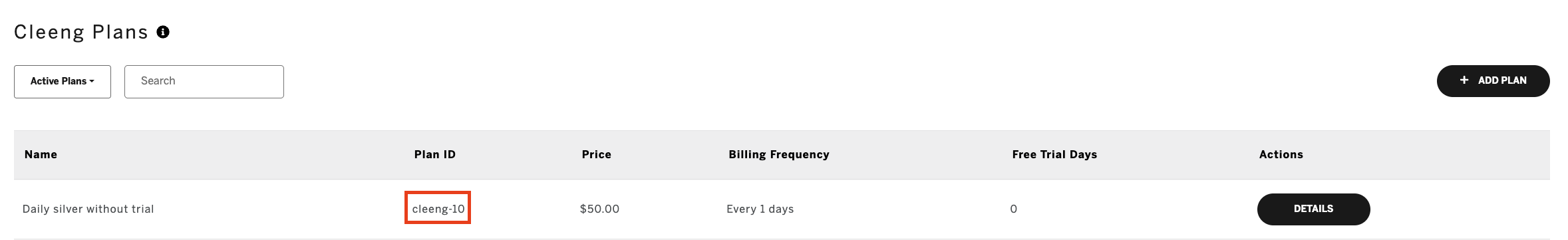 Copy the plan ID of the subscription plan that you want to link to the Cleeng offer.