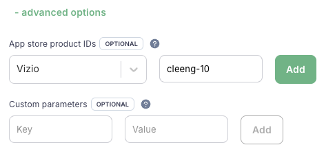 In the App store product IDs section, select the “Vizio” store name, and put the product ID you copied.